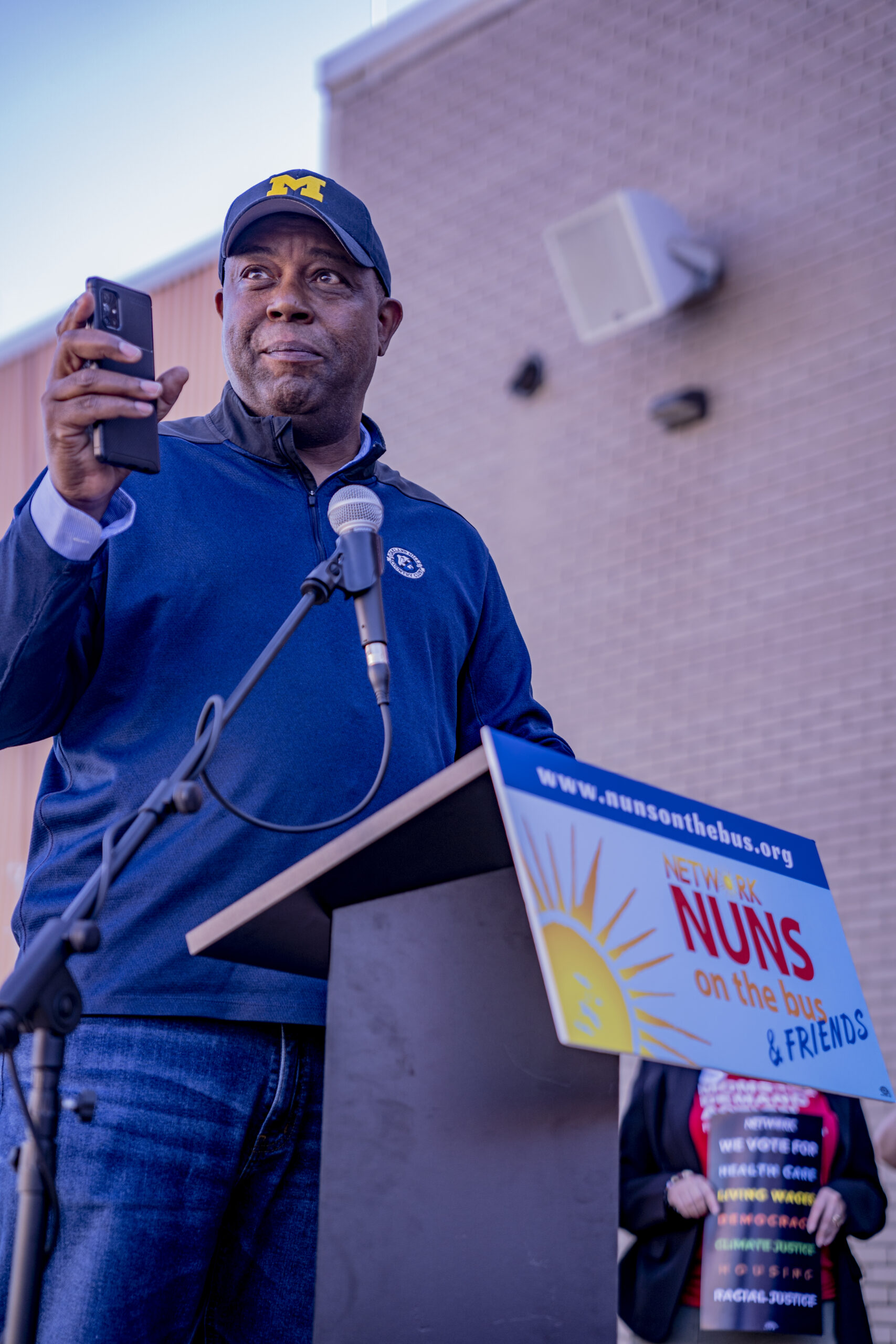 Over a hundred faith and community leaders, union members, and activists welcomed the bus into Detroit to hear how voting can help build a Detroit–and a country–in which “everyone thrives, no exceptions!”