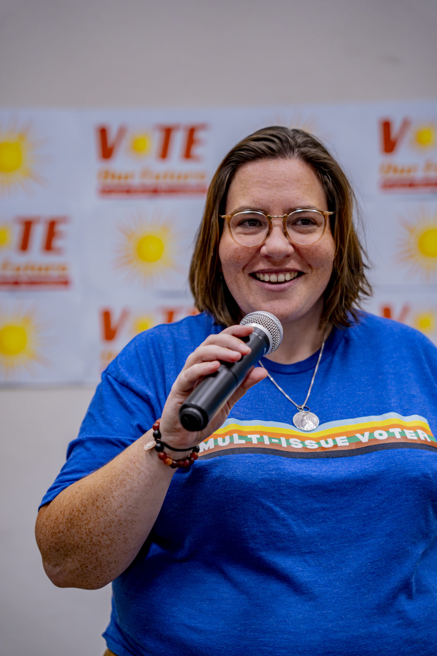 Sr. Deirdre Griffin, SSJ speaks at the Las Vegas Town Hall to Vote Our Future.
