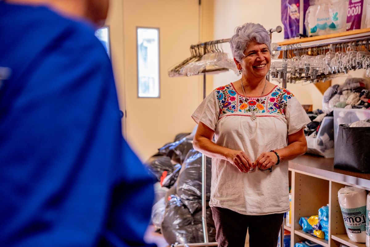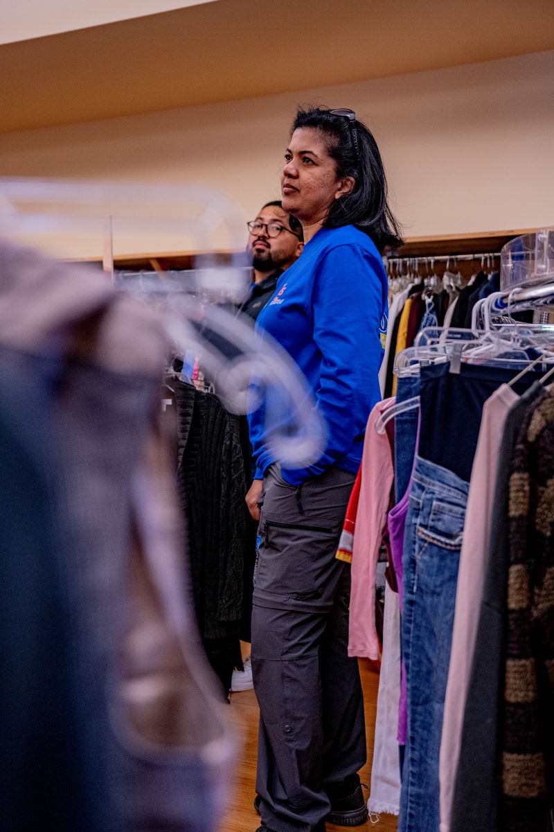 - A volunteer offers a tour of the St. Francis Center clothes closet.