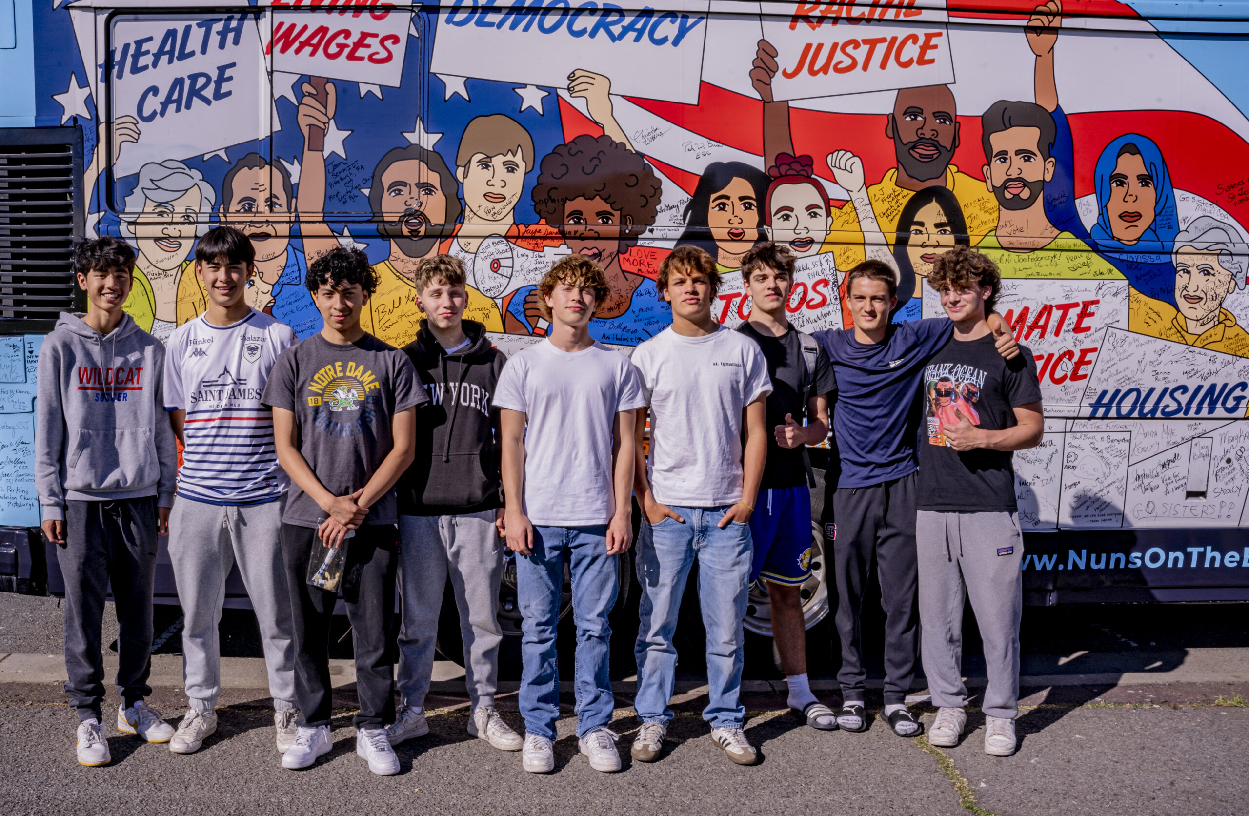 Among us was a large, enthusiastic crowd of high school students eager to learn and support our message. It was an honor to invite them to join in, to call on people everywhere to vote in support of the values we had championed across the country. Their energy was contagious as they eagerly asked if they could sign the bus, leaving their names as a symbol of young voices on this justice journey—a call to action for people of faith to vote their values.